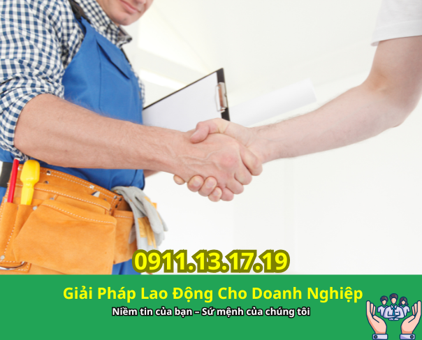Bàn giao lao động: Sau khi đặt cọc, nhân công sẽ được cung cấp cho khách hàng theo yêu cầu, kèm theo các văn bản hợp đồng liên quan.